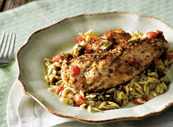 Ombine flour and spices. Dredge fish in flour mixture. Preheat olive oil in frying pan over medi-um heat. ook fish 3-5 min. per side, until golden brown. Squeeze lemon juice over fish and serve. Couscous 2 c. Vegetable or hicken Stock 1 c. ouscous Fresh herbs to taste ring stock to a boil. Add cous-cous and fresh herbs, stir, then cover. ... Read Full Source